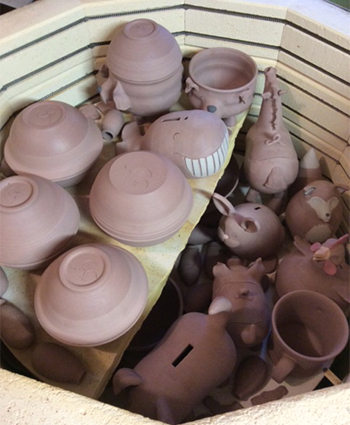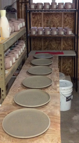 We work in the studio Monday through Friday, creating new work each week. Our work consists of throwing and sculpting, firing, glazing, firing again, then preparing and packing up our pottery to go to market. Each of us have our own work we make and also collaborate on some items. Our routine changes from week to week depending on the needs of the market or to create special order pieces for customers.